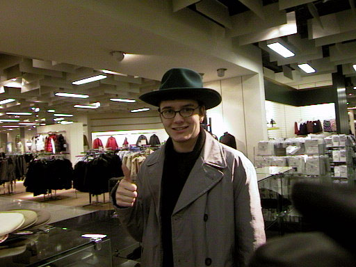 It's the soon-to-be-famous-but-for-now-just-notorious Darren S. Locke wearing a styling hat while I shopped for gloves.