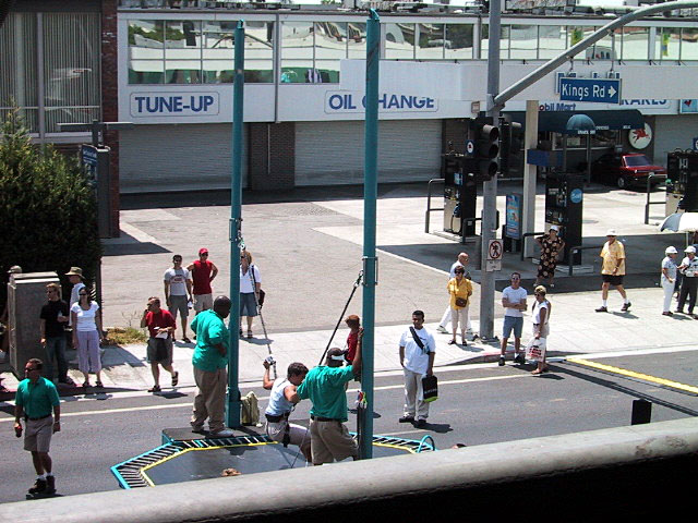 Cute boy in the trampoline harness.