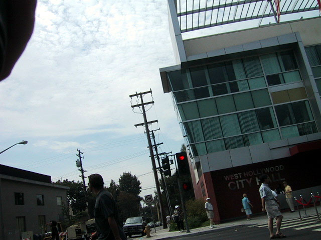 A from-the-hip shot of West Hollywood City Hall. Note that a streat fair celebrating the re-opening of Santa Monica Boulevard was just cranking up.